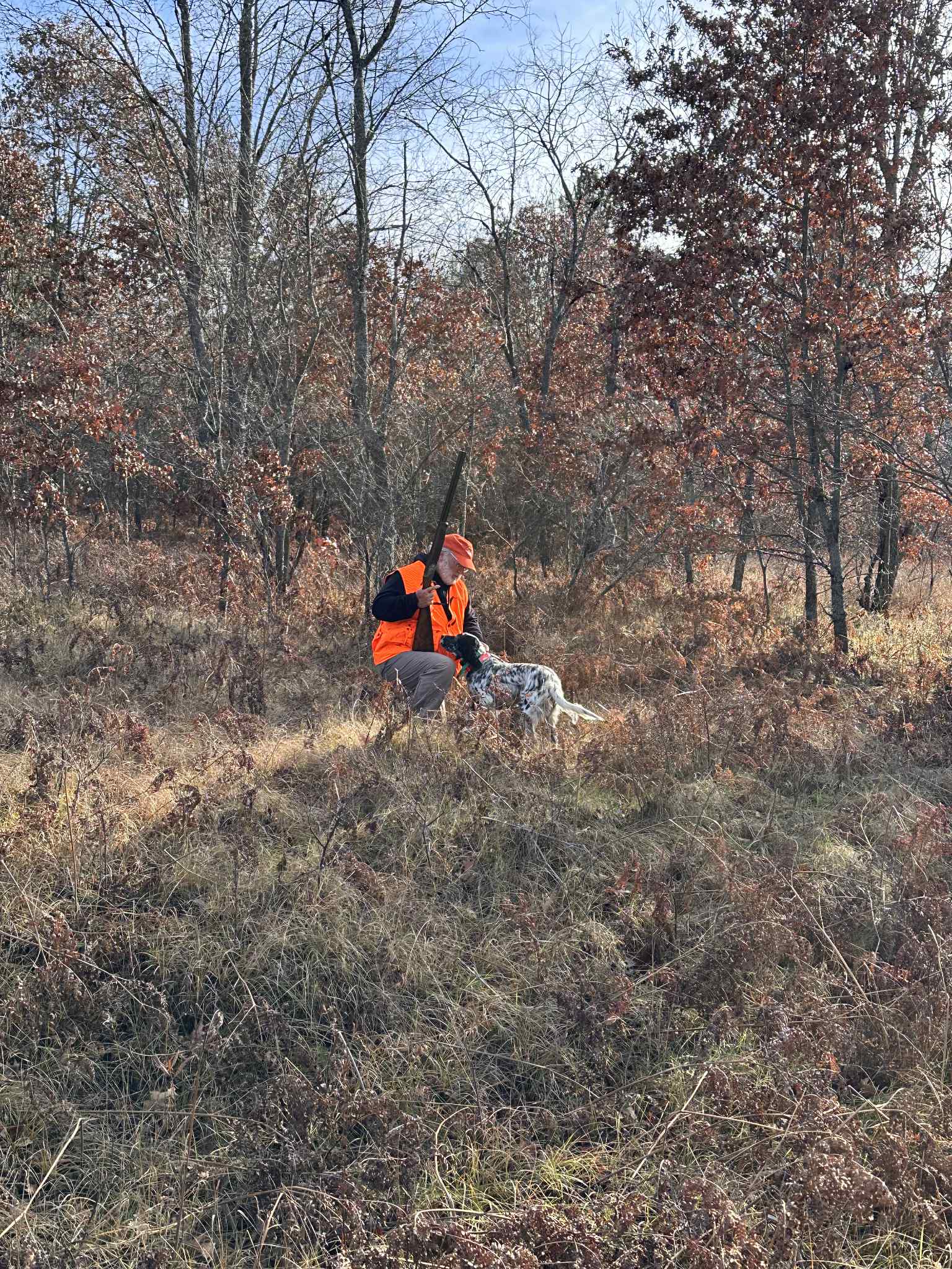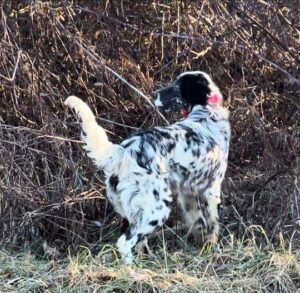 Our Setters are hunted extensively on multiple species of wild birds and are bred only if their performance meets our high standards.  In our opinion and experience if you want dogs who through genetics naturally demonstrate the many necessary, desired qualities and traits of really good bird dogs, then wild bird hunting across species and habitats is the only way to truly evaluate them.  So from puppy hood on we simply take our dogs hunting and let them show us what they’re got, we do no formal training which can mask or compensate for weak or missing traits. My breeding stock has always had hips certified by OFA.  Females average 45-50 lbs, males are around 60.