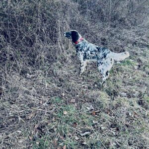 Firelight Spice is a beautiful 45 lb granddaughter of my late Seth. Early on Spice and my beloved friend Randy developed a special bond and she went to live at Randy’s farm with Seth, FL Luke and FL Deacon, and the Labs and farm dogs.  She holds the special role of the only female setter welcomed in a household that prefers boys; she is sweet and affectionate yet definately not a pushover with all the boys. Spice started her career on the woodcock and the semi-wild released quail on the farm, showing a great deal of desire and is a brush beater despite being a bit smaller. On her first trip back up here to the Michigan she quickly caught on to handling grouse and the thick woods.  She requires very little handling, truly hunting for the gun, ranging 40-100 yds . OFA Good   Spice will be spending Fall, 2025 with me in Michigan to hunt grouse and to be bred and raise a litter.